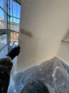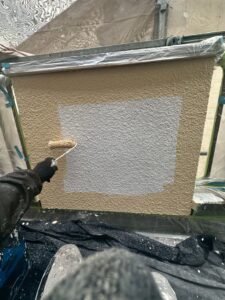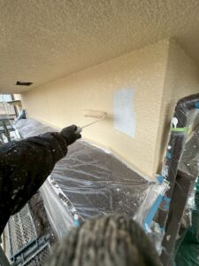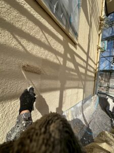 外壁も同様に下地調整し、下塗りから順に塗装していきます。