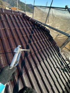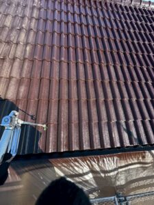 屋根はモニエル瓦と呼べれる瓦屋根で、塗装によるメンテナンスが必要な屋根材です。