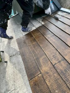 屋根は、点検の際に外壁同様劣化が起こっていたため、足場代を余計に掛けないよう、今回で同時に施工しておくことに。