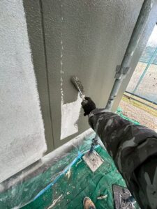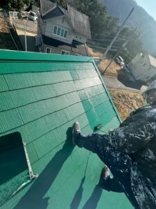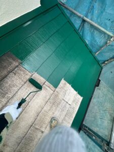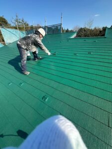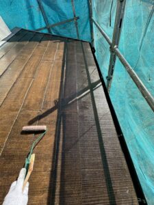 屋根の下塗りでは、紫外線などの影響で劣化した表面を補強・そして塗料との接着性を高めます。