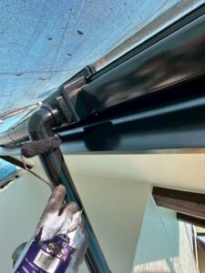 写真は雨樋の上塗りの様子です。