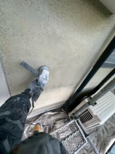 こちらはディスクグラインダーという研磨用機材を使い、苔やカビなどがついている外壁表面を整えている様子です。