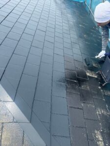 特に、劣化したスレート屋根材はスポンジのように塗料を吸い込むことがあるため、入念に下塗りで吸い込みを抑えておかなければいけません。