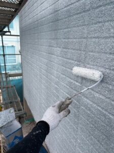 下地調整を終え、外壁の塗装工程に進んでいきます。
