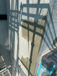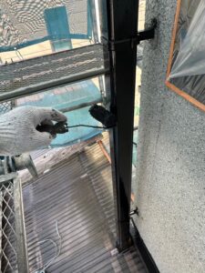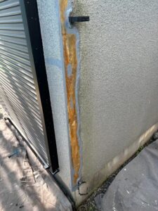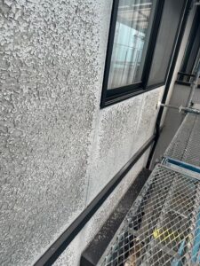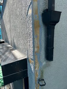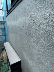 竪樋が取り付けられていた部分は、特に剥がれが著しく、補修が必要な状態でした。