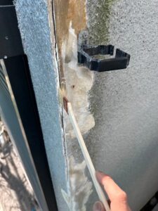 現地を確認したところ、以前の業者が施工したセラミック吹付けが下地と密着しておらず、施工不良ともいえる仕上がりでした。