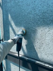 まずは高圧洗浄で汚れや旧塗膜を洗い流し、塗装の下準備を行います。