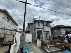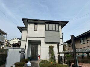 外壁の上塗り塗料にはSK化研社製「ラジカル塗料」 を選び、 劣化を抑え、美観と耐久性を両立させています。