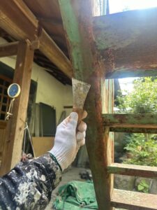 まずは、ケレン作業をしっかり行い、錆を丁寧に除去していきます。