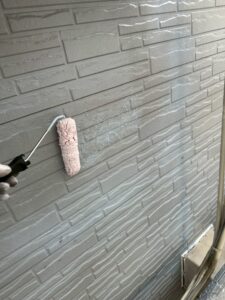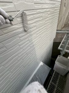 下塗りは仕上がりの色に全く影響致しませんが、仕上がり時の質を高めるために非常に重要な工程になります。いくつか理由はございますが、特に、この後塗布していく塗料を外壁にしっかり密着させるための接着剤のような役割も持っています。