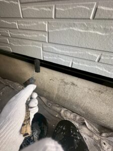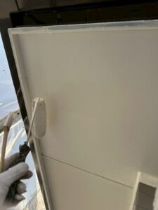 現場に伺うと、大きな外傷などはありませんでしたがコーキング部分に傷んでいる箇所がございました。築年数が20年以上経っているということは外壁、屋根に塗っている塗膜が劣化し耐久性の低下が懸念されます。