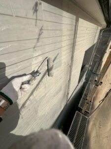 下塗りは仕上がりの色に全く影響致しませんが、仕上がり時の質を高めるために非常に重要な工程になります。いくつか理由はございますが、特に、この後塗布していく塗料を外壁にしっかり密着させるための接着剤のような役割も持っています。